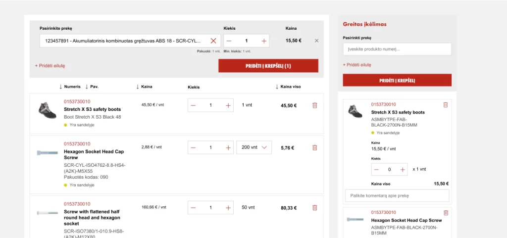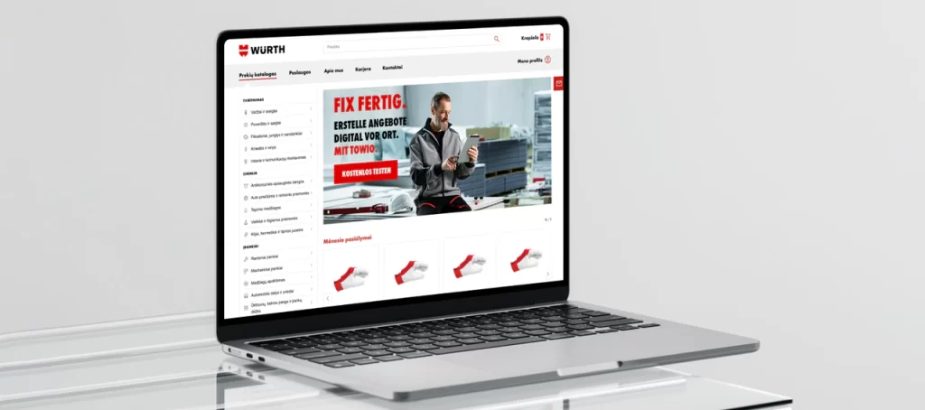 In Lithuania, Würth operates 30 physical retail locations and employs over 70 active sales representatives. However, the company entered the market without an eCommerce solution. To address this, they turned to our team with a request to develop an efficient new system that would digitize part of their B2B processes and ease the workload of sales managers.
